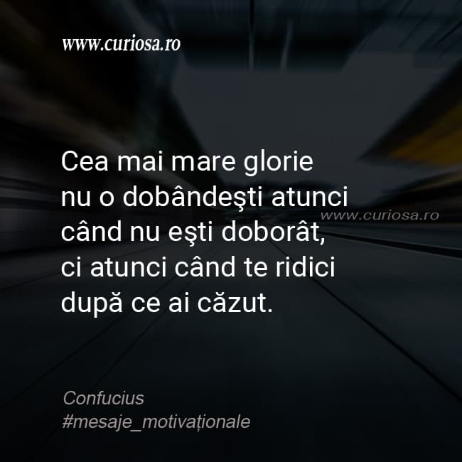 Cea mai mare glorie nu o dobândeşti atunci când nu eşti doborât, ci atunci când te ridici după ce ai căzut.