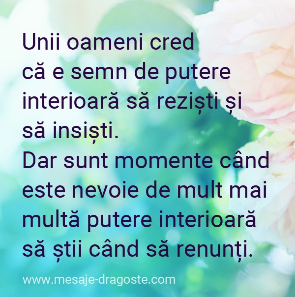 „Unii oameni cred că e semn de putere interioară să reziști și să insiști. Dar sunt momente când este nevoie de mult mai multă putere interioară să știi când să renunți. ”