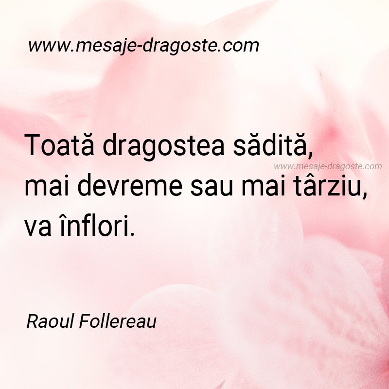 „Toată dragostea sădită, mai devreme sau mai târziu, va înflori.” – Raoul Follereau
